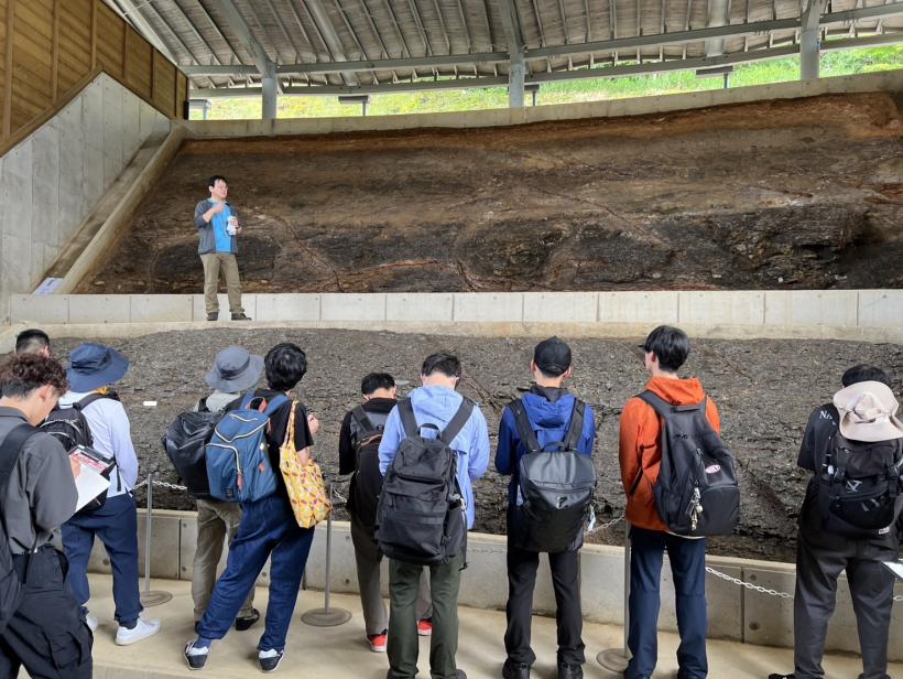 午後は、奈義ビカリアミュージアムに移動し、展示を見学した後、実際に化石を掘り出す発掘体験を行いました。中新世の地層から産出する貝類化石を中心に、標本の取り扱いや記録方法について学び、現場での観察眼を養いました。館内では学芸員の方からの解説も受け、地域の古環境や生物の多様性についての理解を深めることができました。