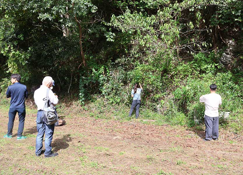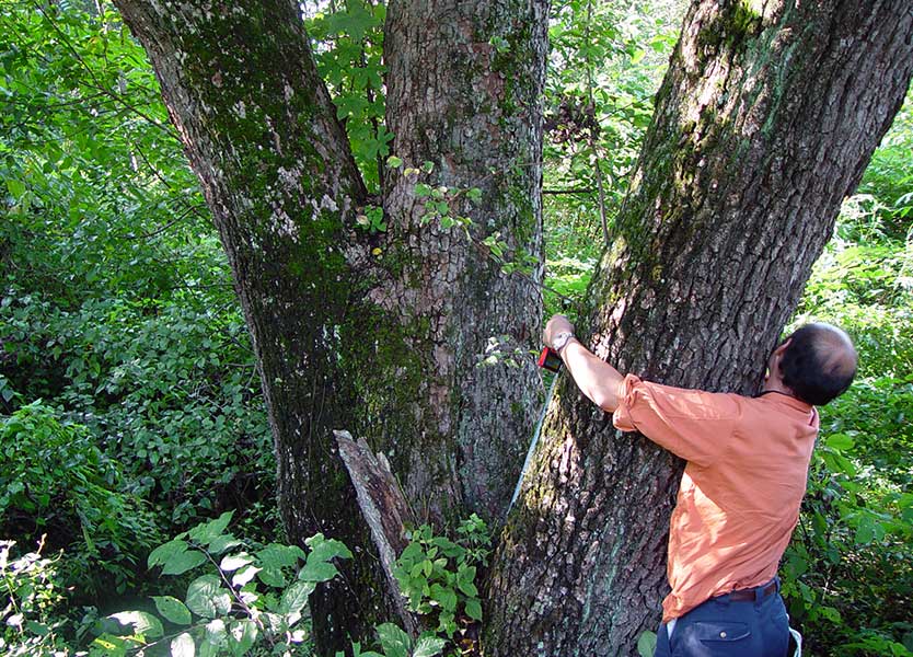 シロヤマブキの自生地でのハーヴァード大アーノルド樹木園との共同調査。