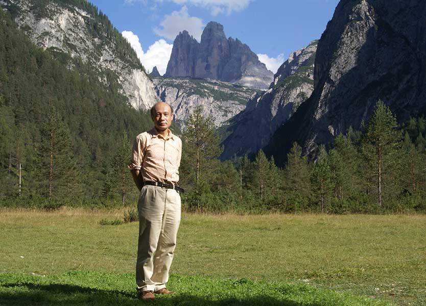 イタリア北東部にある世界遺産ドロミテにて。アルプスのバラ科植物の野外調査の途中で。