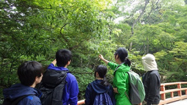 2017年6月23日から6月25日に宮島(厳島)の中にある広島大学大学院理学研究科附属宮島自然植物実験所を利用させて頂き、3年生対象の植物学実習を行ないました。 実験所敷地内の植物相の調査や、実験所の坪田博美先生(広島大学) に解説して頂きながら世界遺産でもある弥山原始林とその周辺で植物観察しました。植物名、植生と環境の関係、シカと植物の関係などを学びました。また、実験所内での食事は自炊でしたので、その他にも多くのことが学べた実習になりました。(OY)