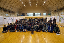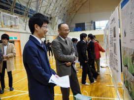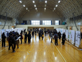 2月12日(日)に、付属高校体育館で生物地球学科の卒論研究発表会が行われました。当日は、1年間の成果として、広い体育館に101題のポスターが掲示されました。生物系、考古地理系、天文・地球系からなる3系列6コースの合同発表会であり、いかにも生物地球学科らしい学際領域に富んだ卒業研究発表会となりました。教員や先輩の質問に、研究を紹介する皆さんの姿がとても印象的でした。寒い日となりましたが、朝からの準備、夕方までの片づけまで手伝ってくださった皆さん、本当にありがとうございました。