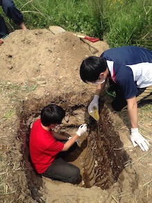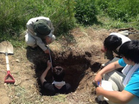 夏の到来を思わせる5月1と2日に,旭川において地理考古学実習(地理:自然地理編:宮本先生担当)を行いました.遺跡発掘調査において堆積物の観察は,モノの堆積プロセスを検討する上で重要です.そのためには,現世の堆積物で学ぶことは沢山あります.