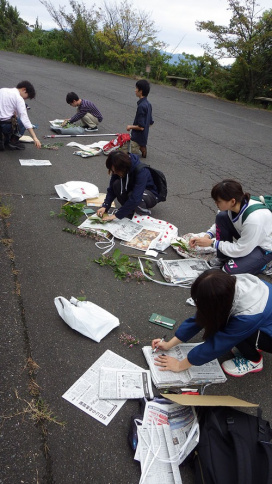 9月25日、26日の1泊2日で2年生対象の野外調査法実習IⅠ「植物分類と植物相調査」を瀬戸内市牛窓町の前島で行いました。実習では、フィールドでの植物観察・採集方法や押し葉標本作製方法などを学びます。大学付近では見られない海岸に自生する植物などを観察したり、アケビの果実を味わったりもしました。