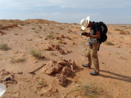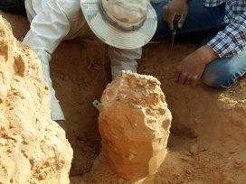 本年は、ゴビ砂漠中央部に分布するDjadokhta層の上部白亜系風成層や河川成層を中心に、地層記載とサンプリング、化石調査を行いました。Udyn Sayrと呼ばれる化石産地では、Protoceratops幼体全身骨格も発見されています。