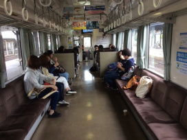 3回生の実習科目「地理・考古学実習」(地理2回目,人文地理編:宮本先生担当)で,ローカル線に乗って,「備前」,「美作」,「播磨」を1日で旅しました.途中の景観からは,中山間地域や,津山の中心商店街,城下町,佐用町の災害痕跡などを観察したり,フィールドへのアプローチの仕方を学びました.