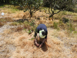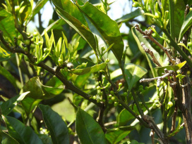 今年から大橋研究室では、卒業研究として、温州ミカンの成長と気象・気候の関係を調べる調査を始めました。 ミカンの開花から着果、果実の成熟まで記録をおこない、その場所の降水量や気温との比較をします。何年も同じ調査を継続していくことで、ミカンの成長への気象・気候の影響がわかってきます。 長い調査になりそうですが、今後の温暖化や極端気象の影響を調べる重要な研究になると期待しています。