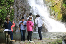 4月24日(金)に3年生の地学実習で、春石灰岩班が野外実習を行いました。 この実習では岡山県西・北部に分布する阿哲石灰岩とそれに関連する堆積岩類を対象として、地形・地質を野外で観察します。 天気に恵まれて吉備高原の地形も見渡せた良い巡検となりました。