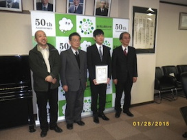 生物地球学科3回生の小泉毅紘さんが,TOEIC公開テストにおいて,極めて優秀な成績を収められましたので,全学生の模範として学長から表彰されました. 来年は,天文の研究室で卒業研究を行うようです. がんばってください.(宮本)