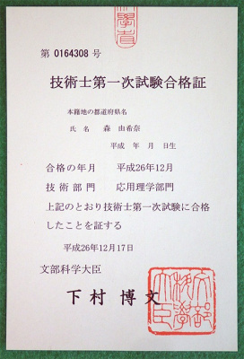 先日、国家資格の一つである技術士補の合格発表があり、