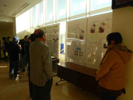 2014年12月13日には、「岡山のフィールドワークから」と題し、一般の市民向けに展示実習発表会を実施しました。受講者は6つのグループに分かれ、それぞれが岡山の「フィールドワーク」で取材した、科学や自然・歴史などの展示と解説を行いました。