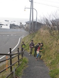 ゼミ発表の合間には島内の段丘などを観察しました。(笑えるのも今だけ???)