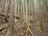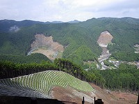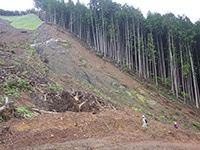 深層崩壊の危険性の高い斜面を特定するために航空測量データを用いて、斜面の変状解析を行っています。 先月、その解析結果が正しいかを確認するために実際に現地調査を行いました。
