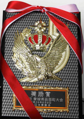 2014年6月5日~6日に開催された、第39回全日本愛瓢会(愛媛県砥部町大会) で、生物地球研究会が作成・出品した瓢箪に対して、奨励賞が授与されました。 瓢箪は生物地球研究会の構成員が丹精込めて栽培し、乾燥や塗装などの手間をかけて仕上げた作品です。 今年も新たな瓢箪を育てており、毎日水やりなどの世話をしています。