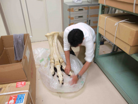 先日、生物地球学部へ恐竜類の標本が搬入されました。今後は恐竜・古生物学コースでの研究等に活用されます。