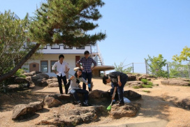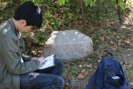 5月16日(金)に1年生対象”野外調査法実習Ⅰ”「3.岩石・鉱物」の野外実習を岡山市北区伊島町の”太陽の丘公園”で実施しました。この公園は、万成花崗岩の採石場跡地に作られたらしく、園内各所に花崗岩の露頭が見られ、花崗岩マグマのいろいろな活動や風化の様子などを観察することができます。快晴に恵まれ、汗ばむほどの陽気でしたが、32名の受講生は欠席も事故もなく、花崗岩を満喫した様子でした。