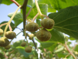 キウイフルーツの雌花 (つぼみ). 3個の雌花のうち1つを残します.