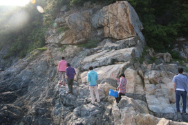 2014年05月02日~03日 地学実習「春の小豆島巡検」班のフィールドワークを、5月2日~3日に行ないました。この実習では、小豆島に分布する中生代後期の深成岩類と新第三紀の火山岩類を対象とした地質地形調査法の実習を行ないました。抜群の天気で、日焼になりながら、受講生は頑張りました!