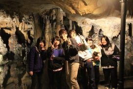 鍾乳洞[満奇洞]で鍾乳石やリムストーンなどを観察