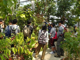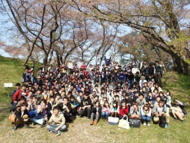 新入生歓迎イベントとして、大学に隣接する岡山市半田山植物園を見学しました。 サクラはかなり散っていて花見には少し遅かったのですが、植物系の先生方による説明や園内にある古墳の解説など充実した内容でした。 大学に戻ってからも研究室の見学、さらには食事会、星空観察会、四次元宇宙シアターと夜まで様々なイベントが続きました。