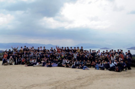 新入生一泊研修が4月5~6日に倉敷市の下電ホテルで行われました。時間割作成や同級生との交流を深め、大学生活をスムーズに始めるための大切なイベントです。初日は出身県別自己紹介や時間割作成を行い、二日目はみんなで鷲羽山に登りました。