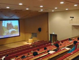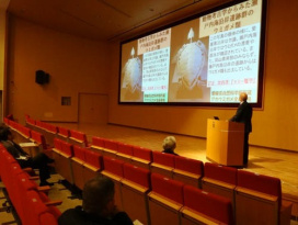 生地からは富岡先生と亀田先生が発表されました。亀田先生の発表では、以前、理科大などで行った備前高島遺跡における発掘調査の成果が紹介されました。