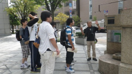 今年度の野外調査法実習1(地理)の2回目が,残暑厳しい8月最後の日に岡山市内で行いました.テーマは,「城下町起源都市,岡山の地理的変遷」で,「NPO法人あしたり岡山」の方から,岡山弁を交えた「濃い説明」を受けました. 普段意識することが希薄な街の歴史地理的変遷について学びました.(宮本担当)