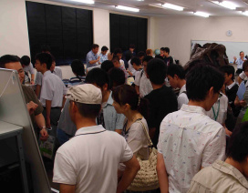 「恐竜・古生物学コース」を説明するコーナーでは,一時期,満員電車の状態となりました.