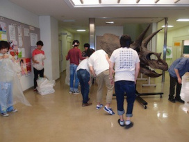 来年度誕生する「恐竜・古生物学コース」で,林原自然科学博物館のご協力を得て,恐竜が21号館にやってきました!.生地研の学生さんに手伝ってもらい,前日に準備しました.