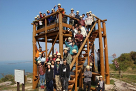 豊島壇山山頂展望台で記念撮影(バックは小豆島)