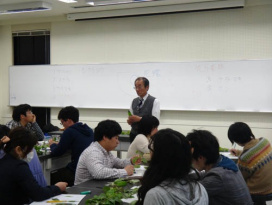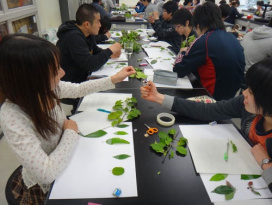 4月24日の生物学実験2では、樹木の葉の観察を行いました。観察といっても、テープで毛を剥がしたり、火であぶったりと、色々な方法を駆使します。 実は、今回の実験は、植物に触れ合って理解すると共に、自ら解説する能力を身につけることもテーマの一つです。理科の教員を目指す方には、役に立つかもしれません。