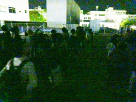 みんなで屋上で星を見上げる(色調補正してあります)。