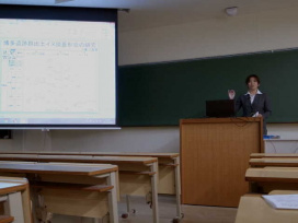 大学院生物地球システム専攻の修士論文発表会が2月9日にあり、9名の修士課程2年生が研究成果を発表しました。教員からの厳しい指摘も多数あり、活発な討論が繰り広げられました。2年間の苦労が報われた発表となったことでしょう。