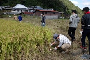 今年度の学科イベントとして餅つき大会をしようという話が進行しています。生物地球研究会の学生有志が6月に田植えをしたもち米が、豪雨や台風を乗り越えて実りました。10月13日には稲刈りを行い、たくさんのもち米を収穫することができました。