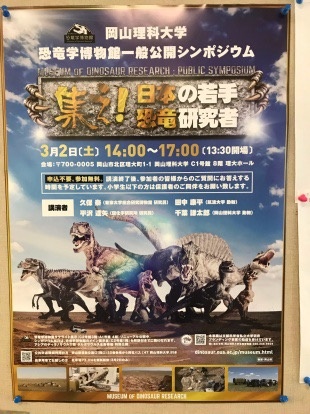 岡山理科大学恐竜学博物館主催のシンポジウム「集え!日本の若手恐竜研究者」が3/2(土)に開催されます。