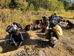 令和4年10月29日に、津山市のつやま自然の不思議館と津山郷土博物館、奈義町のなぎビカリアミュージアムを訪れました。 つやま自然の不思議館では、森本代表理事に博物館について、詳しくご講話いただきました。また博物館を巡りながら、博物館の展示や運営を学び、勝田盆地の自然と人の歴史について学習しました。また、なぎビカリアミュージアムでは、化石発掘を体験しました。これから、学生各自で軟体動物化石の同定や特徴を調べます。生物地球学科では、博物館活動へも力を入れており、博物館の見方や普段は目に見えない事を学習することができます。今回の実習内容に基づいて、今後の学科での学びへつなげて下さい。