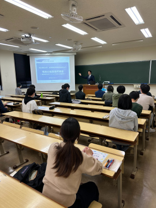 生物地球学科では、学科独自で就職進路に関する情報提供を行っています。 今回は、就職支援企業に就職した本学の卒業生に説明頂きました。 本学の学生時代の経験も含めた話題提供だったので、学生たちに刺さる内容でした。 早めの対策を行ってほしいと思います。