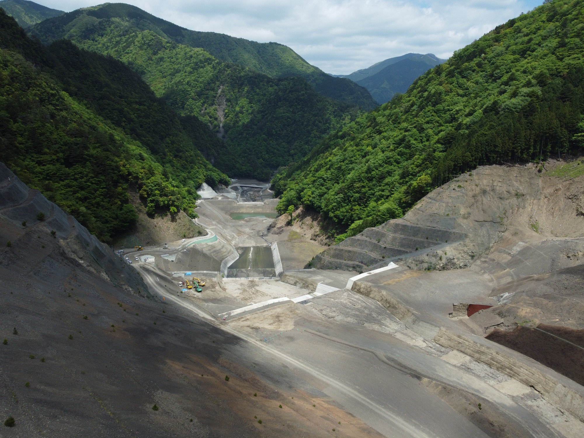 防災・減災研究室(佐藤研究室)は連休明けに、国内最大級の砂防工事現場を国土交通省紀伊山地事務所の職員のみなさまにご案内頂きました。ここでは、常に崩壊の恐れがあることから、無人化施工、自動化施工が行われており、無人なのに重機が行き来して土工工事が行われていました。写真はドローンで撮影したものですが、巨大すぎて人影どころか重機も探さないと見えません。