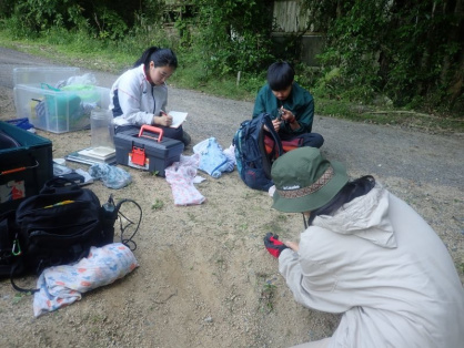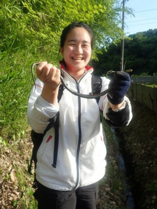 卒論研究のため、水田生物を代表するカエルとヘビの生態調査を実施しました。ニホンアカガエルの上陸個体がみられ、シュレーゲルアオガエルが多数、鳴いていました。ヘビは1日で21個体も目撃することができました。定期的に調査を実施し、活動性や食性などの季節変化について調べます。