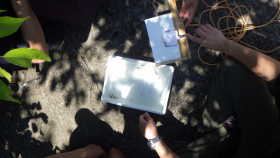 生物地球学科2年生対象の野外調査法実習II (魚類・爬虫類)の野外実習を行いました。大学近くのため池に生息する魚類とカメ類を対象にしています。実習では,採集用具の使い方の説明を受けた後,各班で「捕れそう」な場所の見当をつけ,実際に罠を仕掛けました。仕掛けた場所の環境も記録し,一定時間後に引き上げました。採集された魚類やカメ類の同定や計測方法についても現場で学びました。天気に恵まれ暑い日でしたが,熱中症に注意しながら実習を終えました。