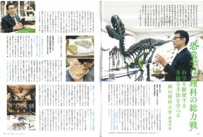 株式会社大学通信発行の進学情報誌ユニヴプレス 2024年6月号 Vol.41に、2025年度新設の学科として生物地球学部恐竜学科が取り上げられました。實吉玄貴准教授が、これまで本学で行われてきた研究や、恐竜学科での新しい学び、新学科の魅力などを丁寧に紹介しています。恐竜学科にご興味のある皆さん、ぜひご覧ください。なお記事掲載に関し、大学通信様よりご許可頂きました。ありがとうございました。