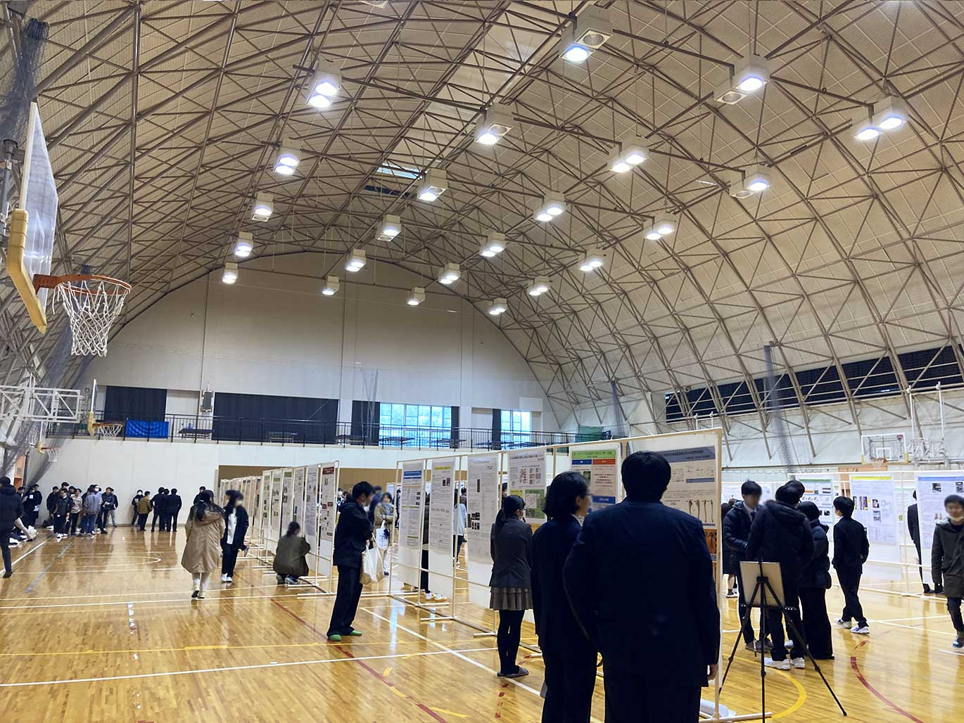2月8日に生物地球学科の卒業研究発表会が行われました! ポスター発表スタイルで全員が1年間の研究成果を発表する場となります。 今年も100名を超える発表者がいるため、体育館を使っての開催でした。 外はとても寒い日でしたが、体育館内は熱気あふれる空間と化していました。 4年生の皆さん、ご卒業おめでとうございます!