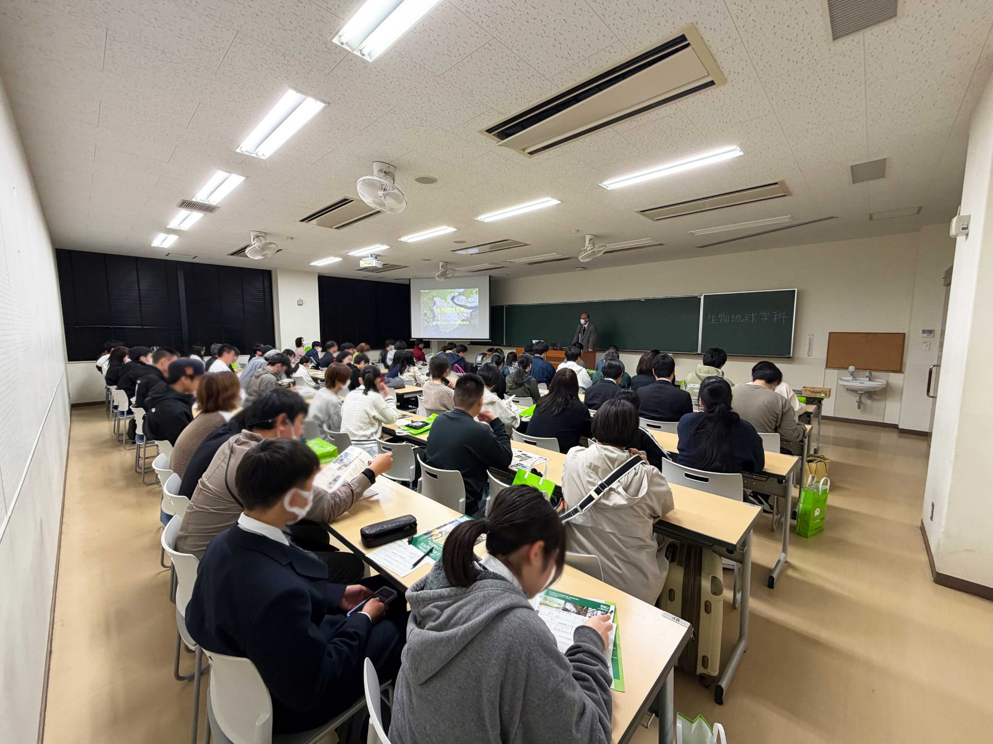 3月29日に2027年入学対象のオープンキャンパスを開催されました。 見ての通り講義室が満員です。3月ですがこの時期から熱心に本学科を御訪問頂きありがとうございます。 この10分後に各コースの実験室に行き、先生方、先輩方と最先端の体験して頂きました。 生徒さんには本日の体験に基づき、進学先として検討に入れて頂ければうれしいです。 次回は6月28日に開催を予定しています。