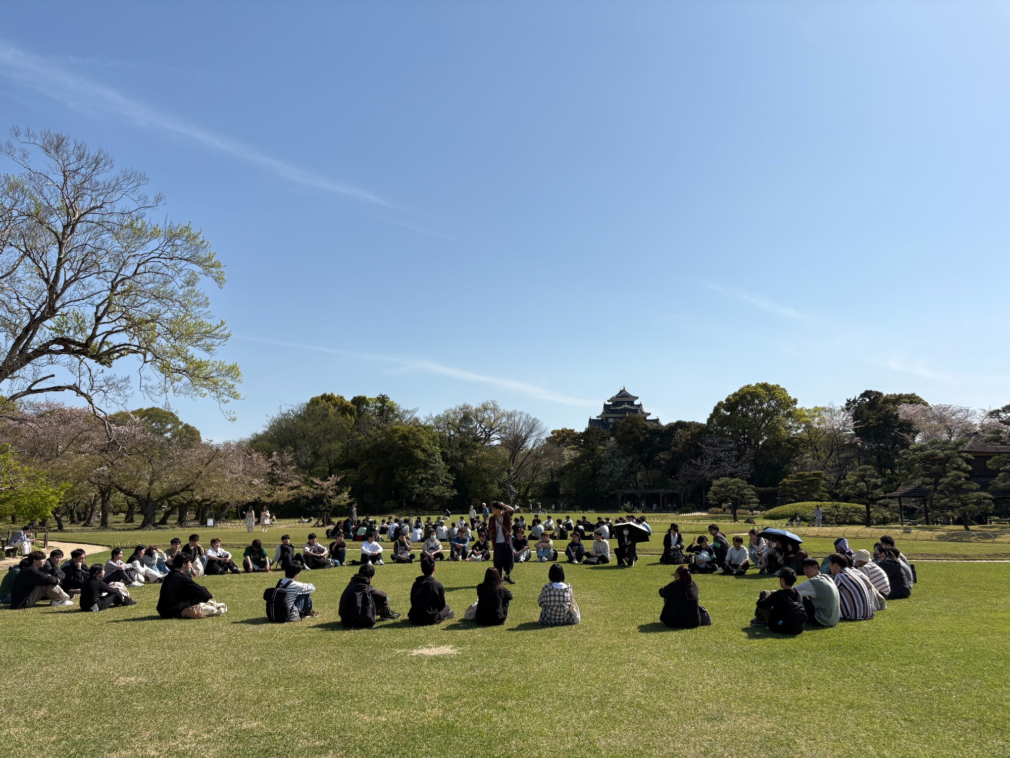 新入生のみなさん,生物地球学科へのご入学おめでとうございます。今年も新入生歓迎行事として,後楽園の見学と新入生同志の交流を行いました。