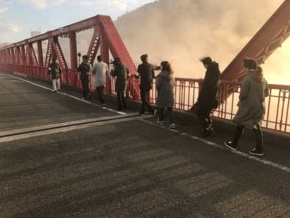 大橋先生が研究室の学生とともに現地へ出かけ、「肱川あらし」の冷たい強風が人体へどんな