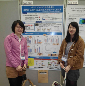 日本生態学会大会では500件を超える学生ポスターの発表がありました。そのほとんどが大学院生という状況の中での学部3年生の受賞は、素晴らしい快挙です。久木田さんと合田さんは、4月からは別々のテーマで卒業研究を始めています。今後の活躍がますます期待されます。